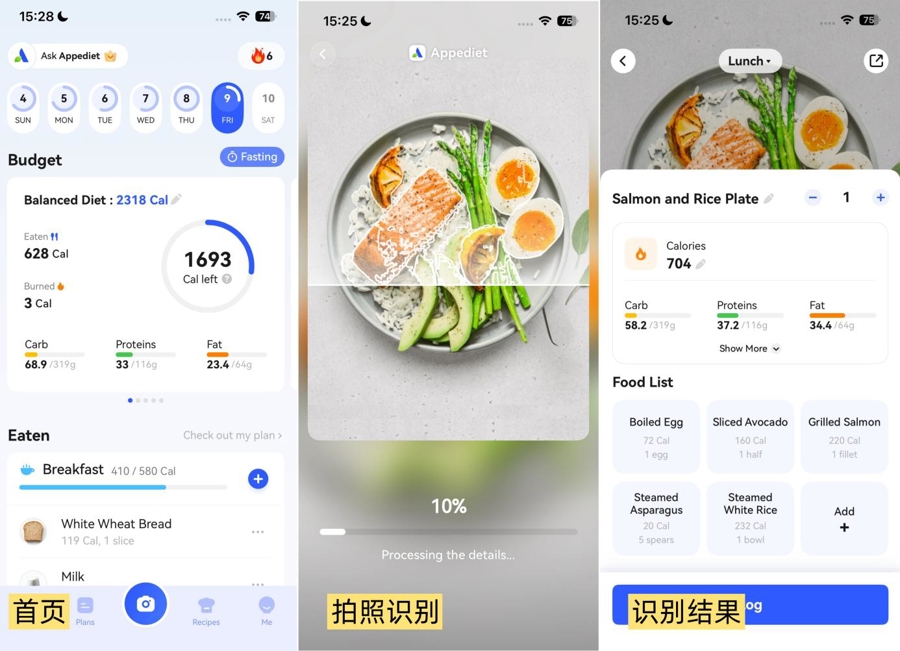 Appediet拍照识别食物营养成分